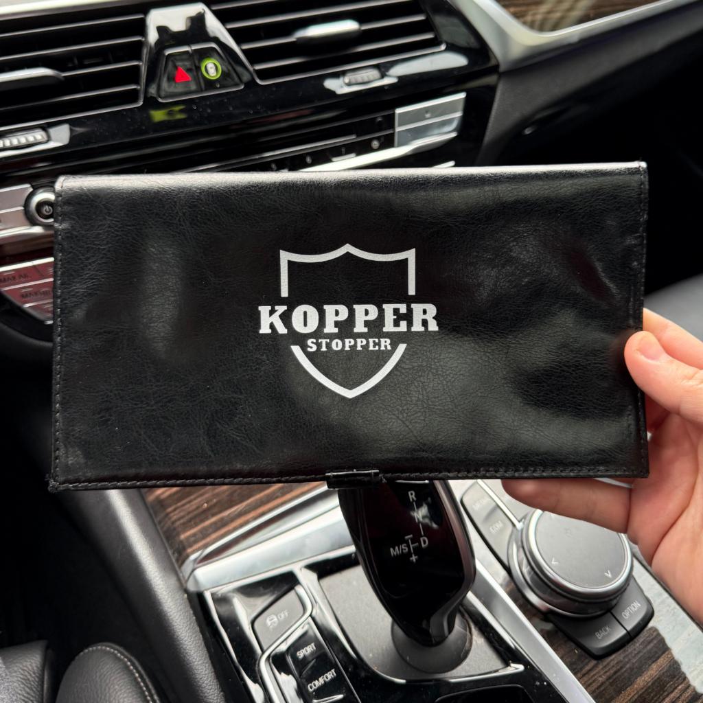 Kopper Stopper is the game-changing document holder designed to give you peace of mind during traffic stops. With dedicated compartments for your license, registration, and insurance, it keeps critical documents neatly organized and instantly accessible. But the real star is the built-in, rechargeable voice module: with a simple press, it automatically plays a clear message asserting your rights—so you can stay calm and let the Kopper Stopper do the talking.