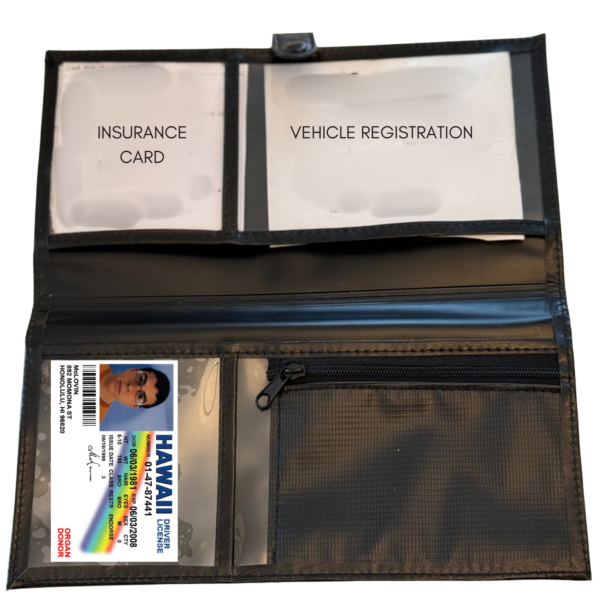 The Kopper Stopper is a sleek, USA-assembled holder with compartments for your license, registration, and insurance. Its rechargeable voice module plays a clear message to assert your rights during traffic stops, so you can stay calm and prepared.